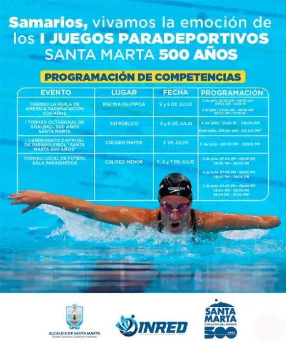 Gracias a la gestión del alcalde Carlos Pinedo Cuello y en el marco de la conmemoración de los 500 años de Santa Marta, el Instituto para la Recreación y el Deporte Distrital -INRED-, anuncia la realización de la primera edición de los Juegos Paradeportivos “500+ Incluyentes”, una apuesta sin precedentes por la equidad, la integración y el reconocimiento del deporte adaptado como motor de transformación social.